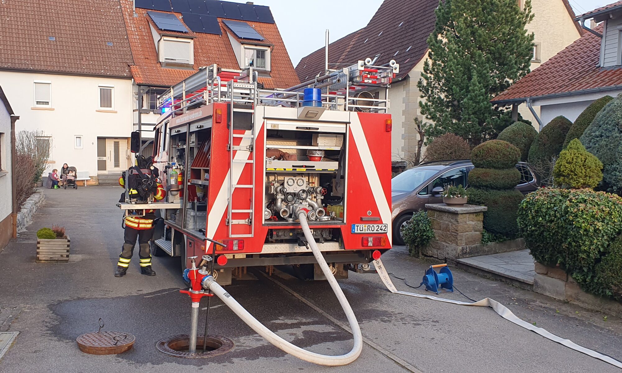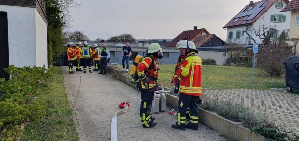 Beim Eintreffen der Feuerwehr wurde der Brand bereits durch einen benachtbarten Anwohner mit einem Feuerlöscher gelöscht.